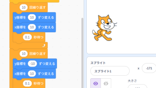 【スクラッチ】「x座標」を使った簡単なプログラム