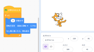 【スクラッチ】「もし端に着いたら、跳ね返る」を使った簡単なプログラム
