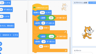 【スクラッチ】「X座標を()にする」ブロックを使った簡単なプログラム