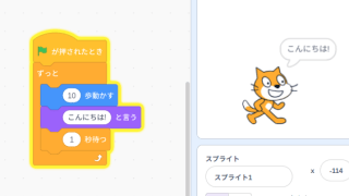 【スクラッチ】「(こんにちは!)と言う」 をつかった簡単なプログラミング