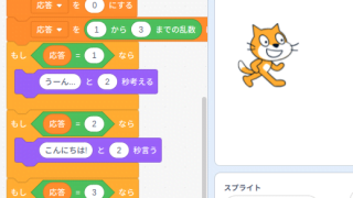 【スクラッチ】「うーん…と2秒考える」を使った簡単なプログラム